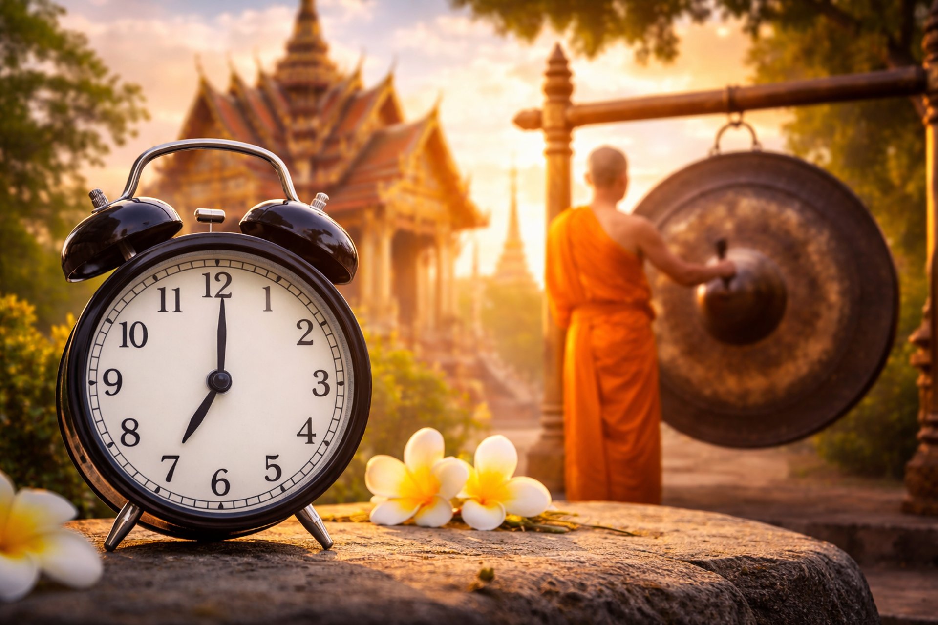 Un aspetto importante dell’orario thailandese è che affonda le sue radici nei suoni. In passato, infatti, il tempo non veniva scandito da orologi ma da segnali ben precisi: il suono dei gong e dei tamburi annunciavano i diversi momenti della giornata. Proprio da questi suoni nascono alcune parole usate ancora oggi.