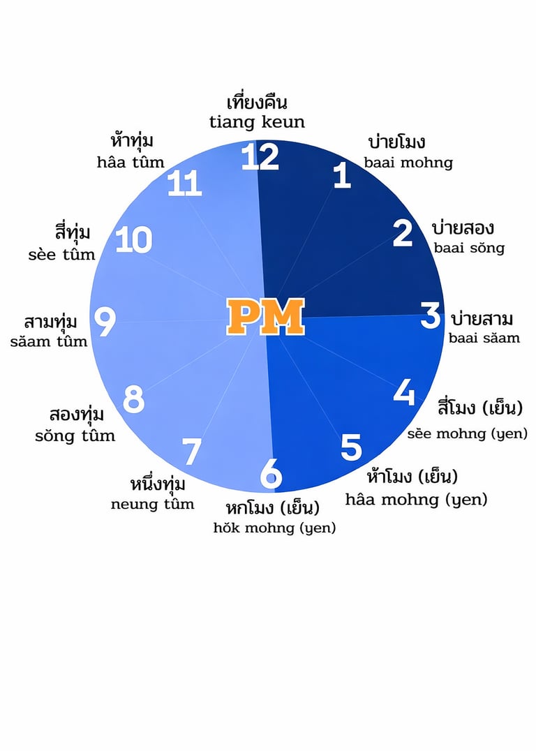 ore 12,30 = thîang krûeng (mezzogiorno e mezza)