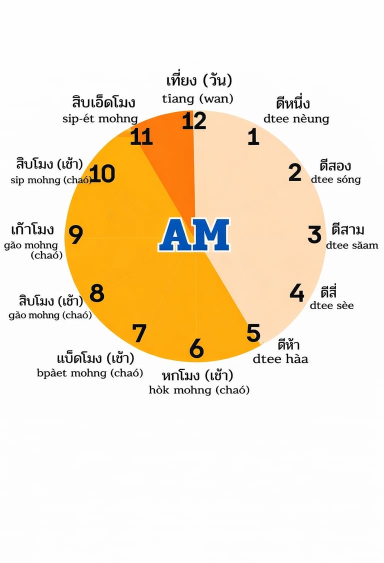 In Thailandia esistono in realtà due modi di leggere l’orario. Da una parte c’è il formato “ufficiale” a 24 ore, lo stesso che usiamo anche noi, utilizzato nei contesti formali come TV, documenti, orari dei trasporti o annunci pubblici. Dall’altra c’è il linguaggio quotidiano, quello che sentirai davvero per strada: un sistema più tradizionale in cui la giornata viene divisa in fasce con nomi diversi. È proprio questo il modo più autentico di dire l’ora, quello che riflette la cultura thailandese e che può confondere all’inizio… ma che rende tutto molto più affascinante.