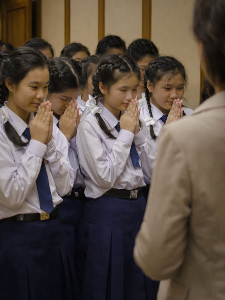 In Thailandia il rispetto non è solo una tradizione: è un'abitudine che si costruisce fin da piccoli. A scuola gli studenti salutano gli insegnanti con il wai all'unisono, trasformando un semplice gesto in una vera lezione di disciplina, educazione e cultura.